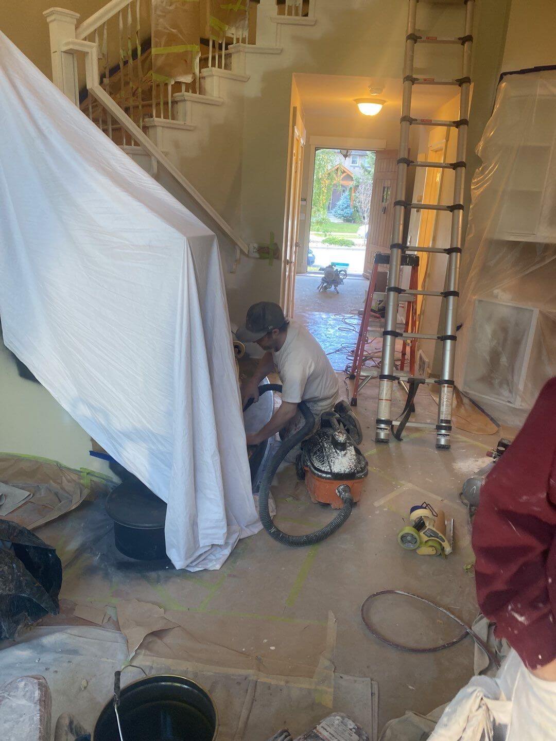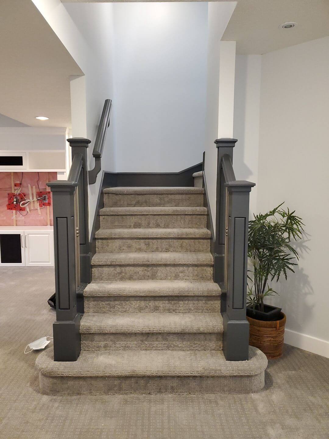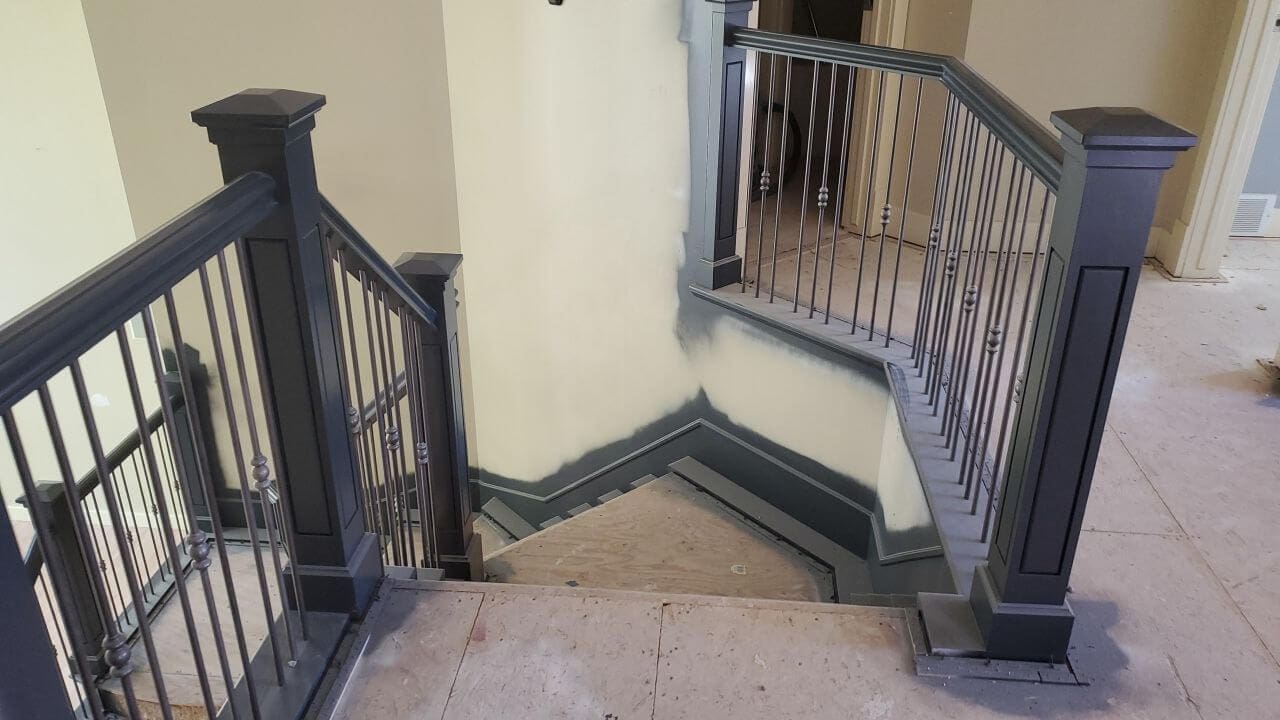 Modern Grey and White Painted Cabinets and Banister in Discovery Ridge