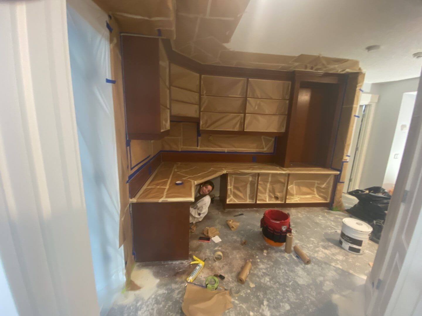Do you have dated dark stain on your cabinets and other millwork features? Consider having them painted in a contemporary two-tone colour scheme! These dark and dated cabinets were instantly modernized with a fresh and bright white that truly opened up the space and changed the entire feel of the main floor. The darker accent banister railing from upstairs all the way to the basement level, as well as white in the basement built-ins tied this whole project together and modernized this home’s entire interior. Having your cabinets and millwork painted will completely transform your home!