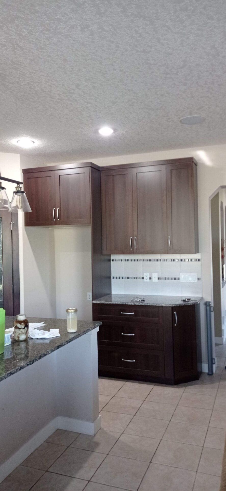 Are your dark brown cabinets and millwork in need of a stylish upgrade? Consider having them painted a striking new colour using professional spray coatings! Our step-by-step process ensures any surface we spray is fixed, filled, caulked and sanded to guarantee a smooth, flawless result. Replacing your cabinetry can be very expensive, and in most cases what you already have in your home is still in great shape! Save money and transform your home’s interior with professional spray coatings!