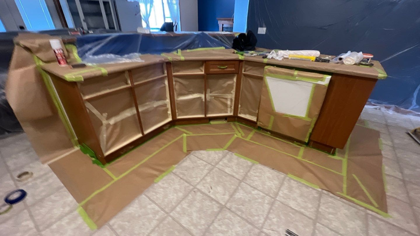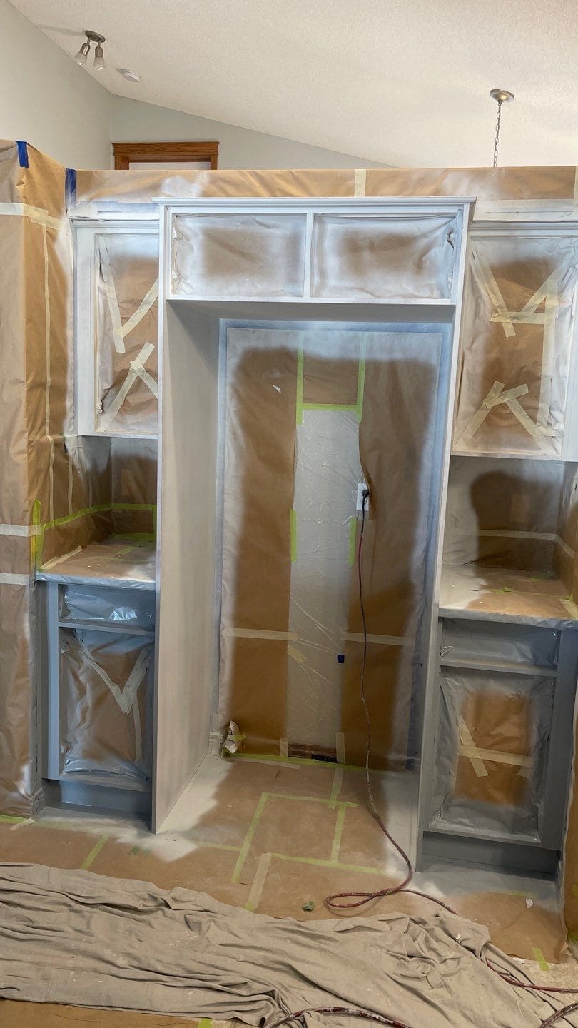 The combination of the warm cloud white with a cooler base cabinet in Nimbus Grey gave a striking final look. Do you have classic brown wood kitchen cabinets? Consider having them painted a stylish and modern two tone! It not only instantly modernizes your home, but renews your cabinetry doors and wooden fronts in such a way that makes them look brand new once the painting is done. Instead of paying to replace your cabinets, refresh and modernize what you already have with a cabinet painting job!