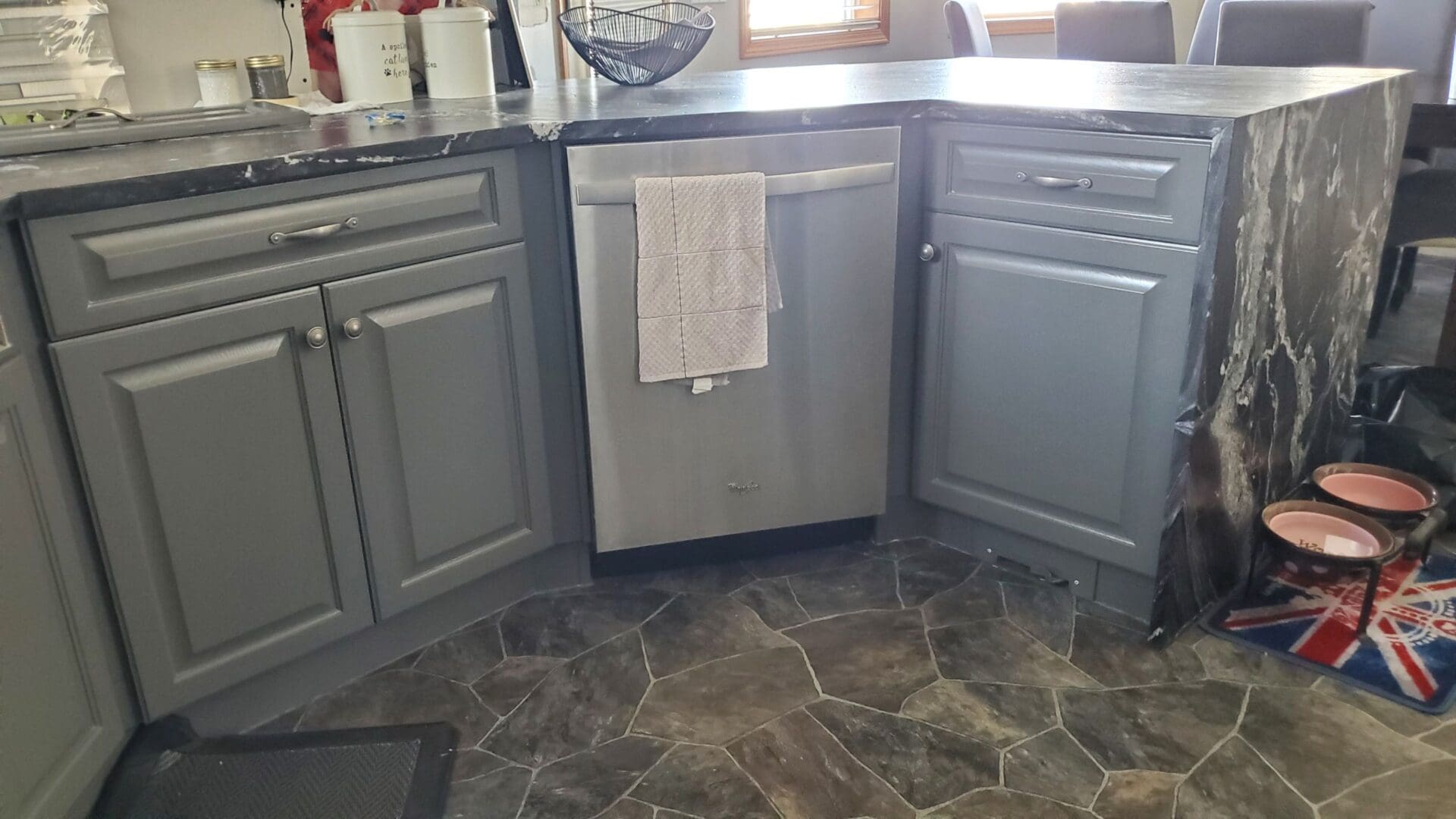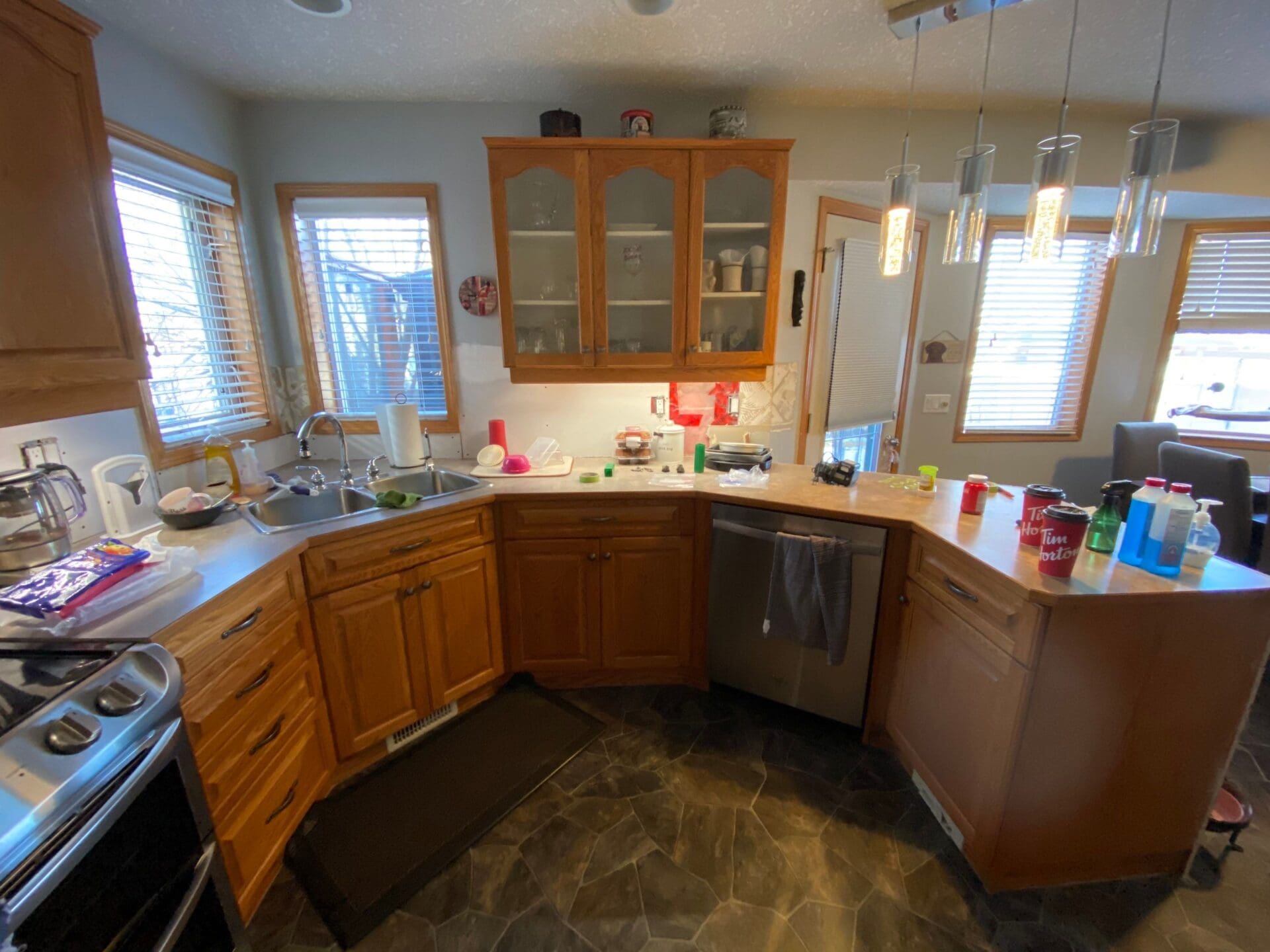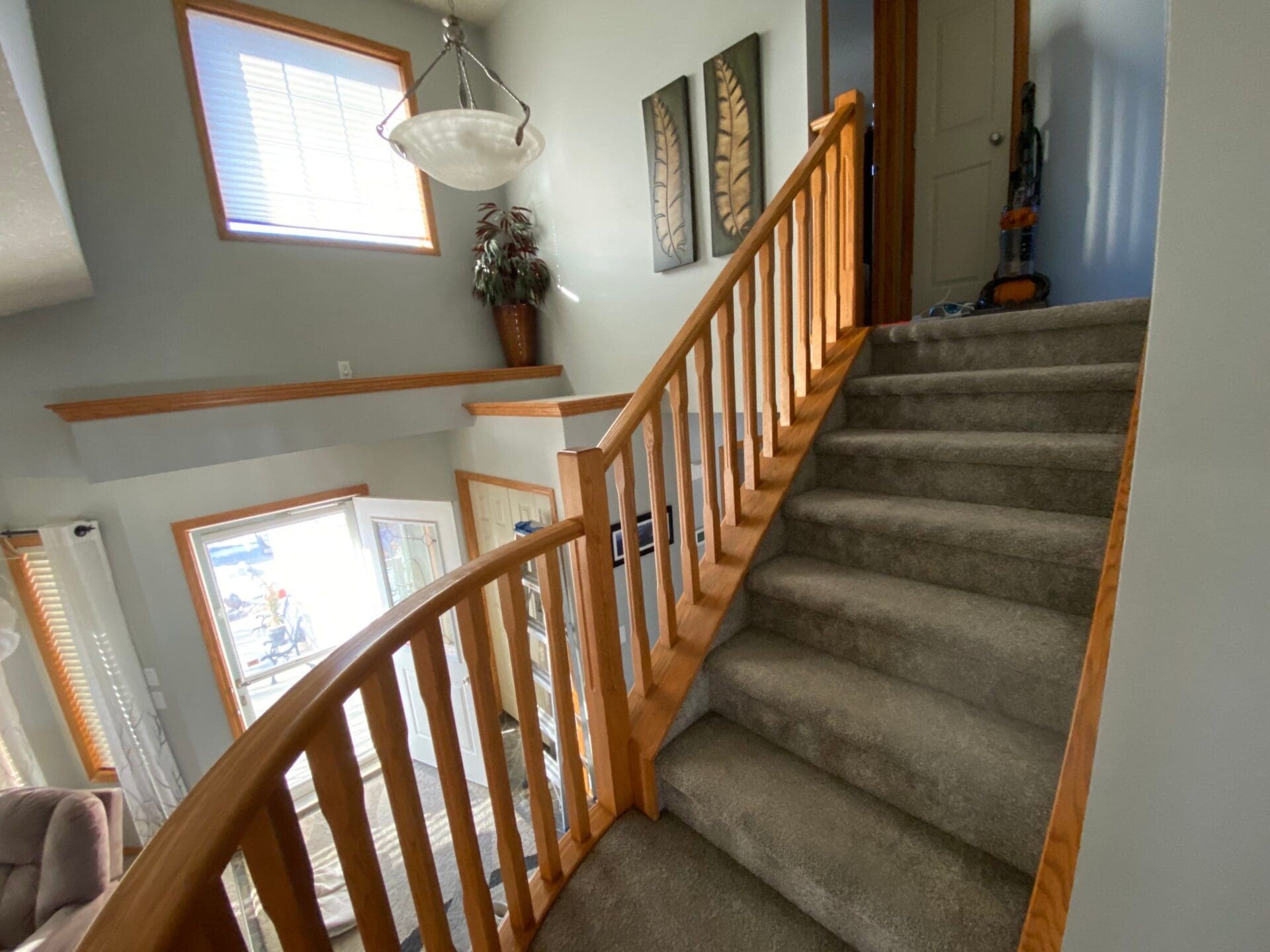 Painted Oak Cabinets and Banister