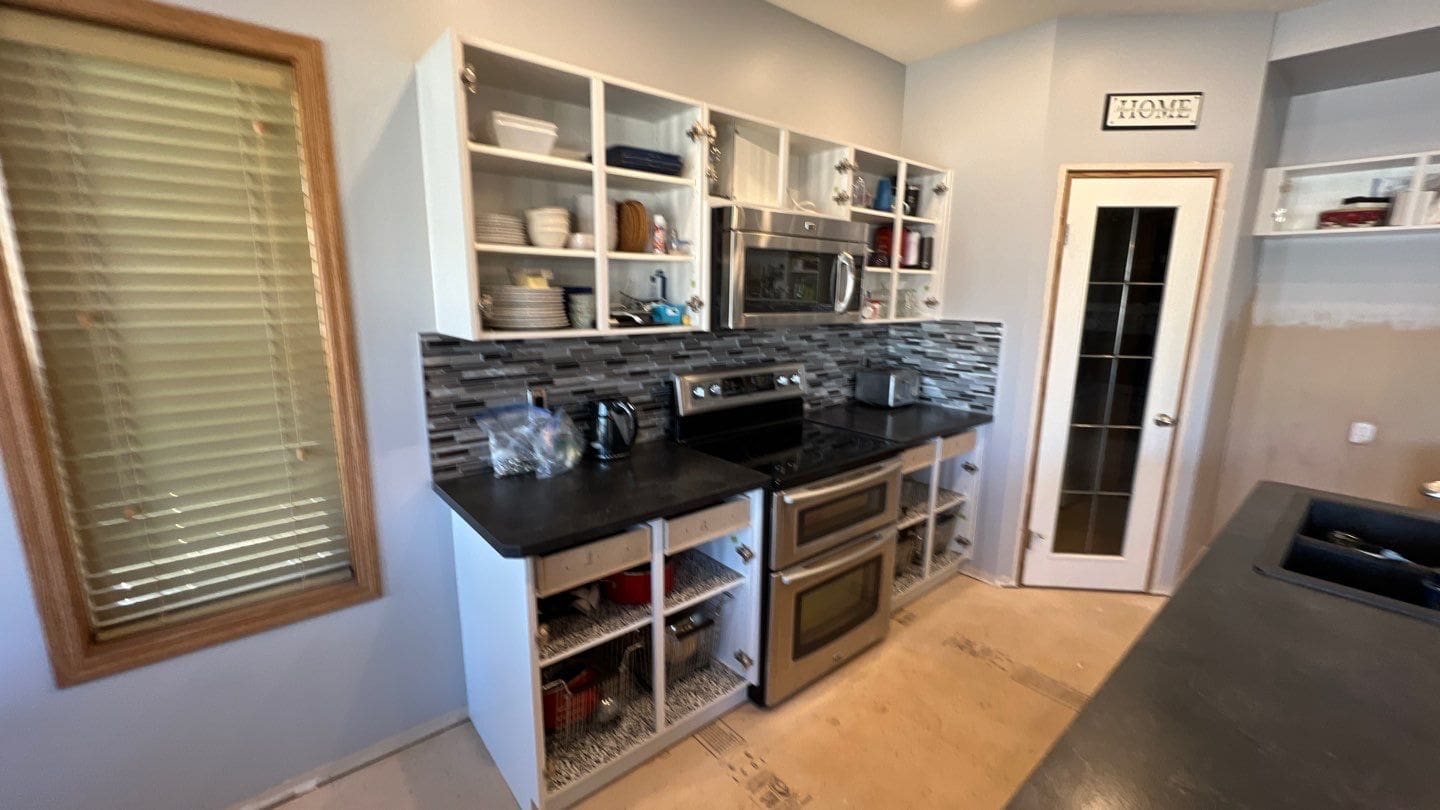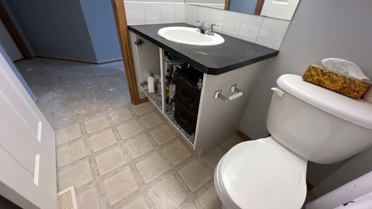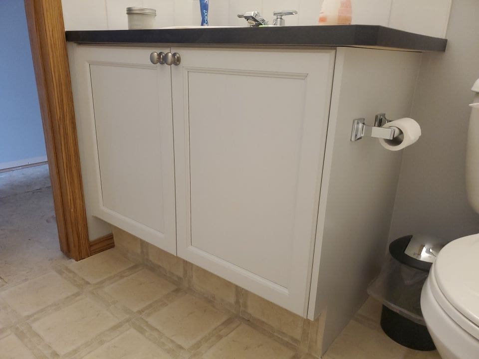 This clients home was vastly updated by this quick and cost effective renovation. The before and after photos speak for themselves! Do you have classic orange oak cabinets? Consider having them painted a stylish and modern shade of white! It not only instantly modernizes your home, but renews your cabinetry doors and wooden fronts in such a way that makes them look brand new once the painting is done. Don’t replace your aging cabinetry when you could easily get another ten or fifteen years of good use out of them!