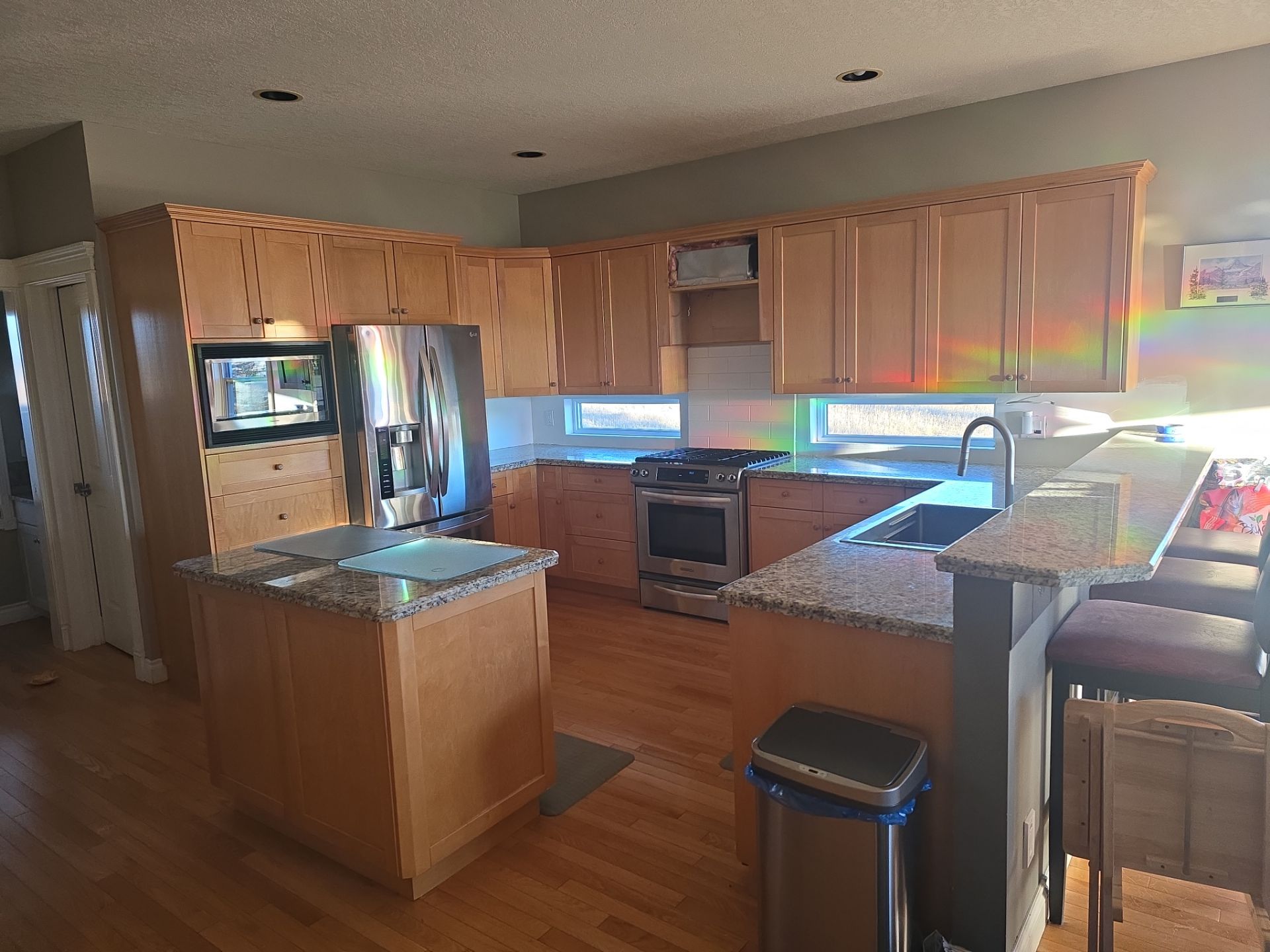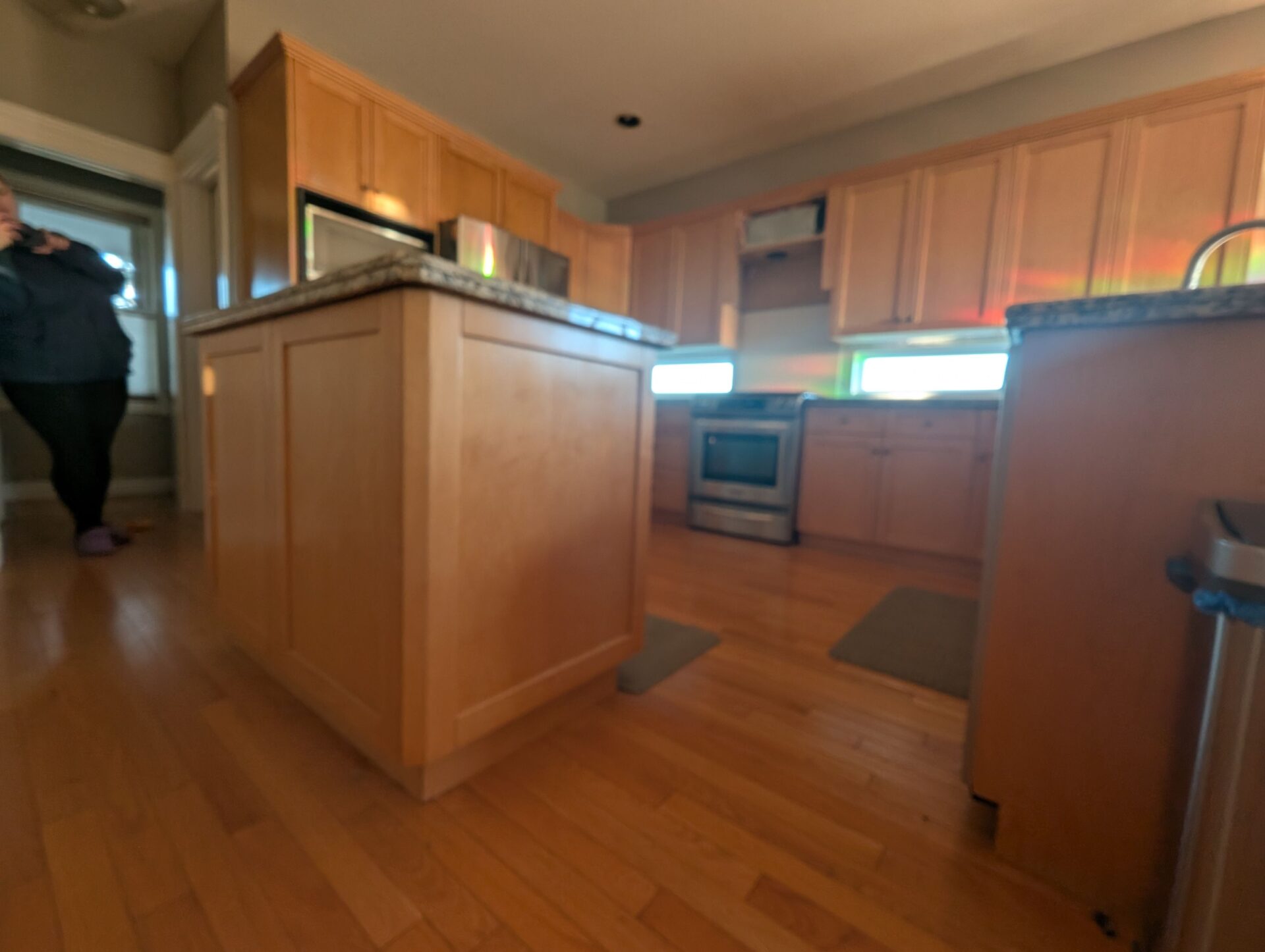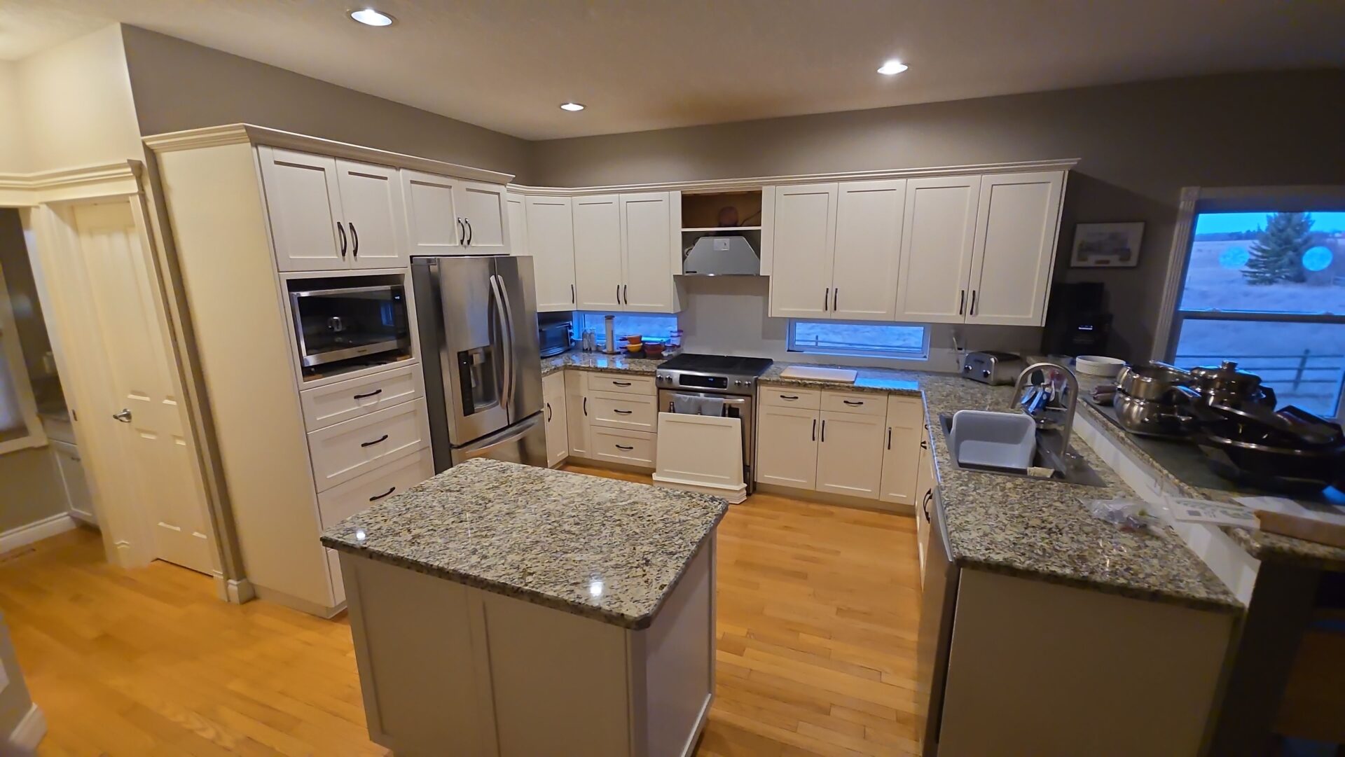 This project featured a full kitchen cabinet painting in professional spray coatings. See how professional kitchen cabinet painting transformed orange maple cabinets into a bright, custom off-white finish that flows with the rest of the home. This cabinet painting project focused on creating a brighter, more cohesive look that matched the rest of the home. By updating the existing orange maple cabinets with a custom-matched off-white finish, the kitchen was transformed into a clean, open space that complemented the homeowner’s décor and artwork.