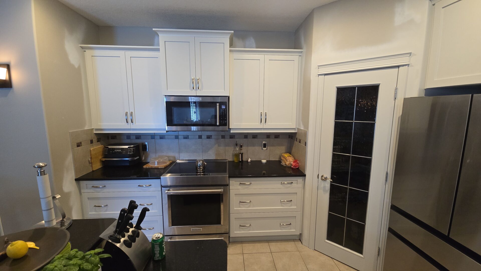 The homeowner achieved a bright, clean, and modern interior that perfectly matched their new flooring and countertops. The updated colours made the home feel refreshed and cohesive, while the professional spray finishes delivered a sharp, high-end appearance. The transformation helped elevate the entire space without the cost or disruption of replacing cabinets or woodwork.