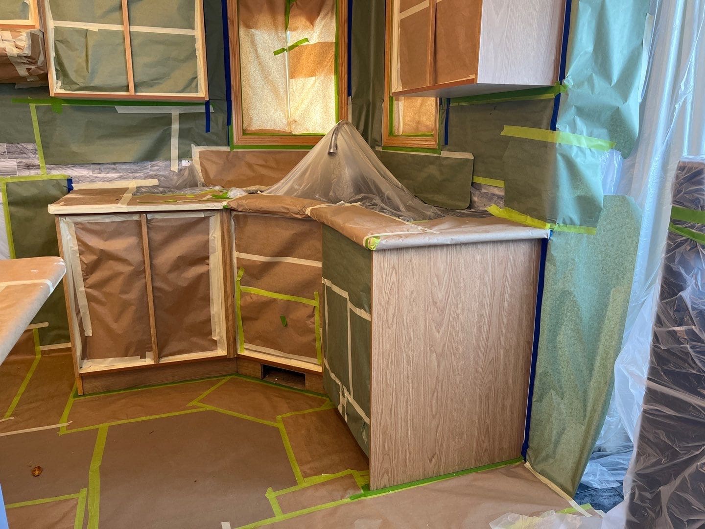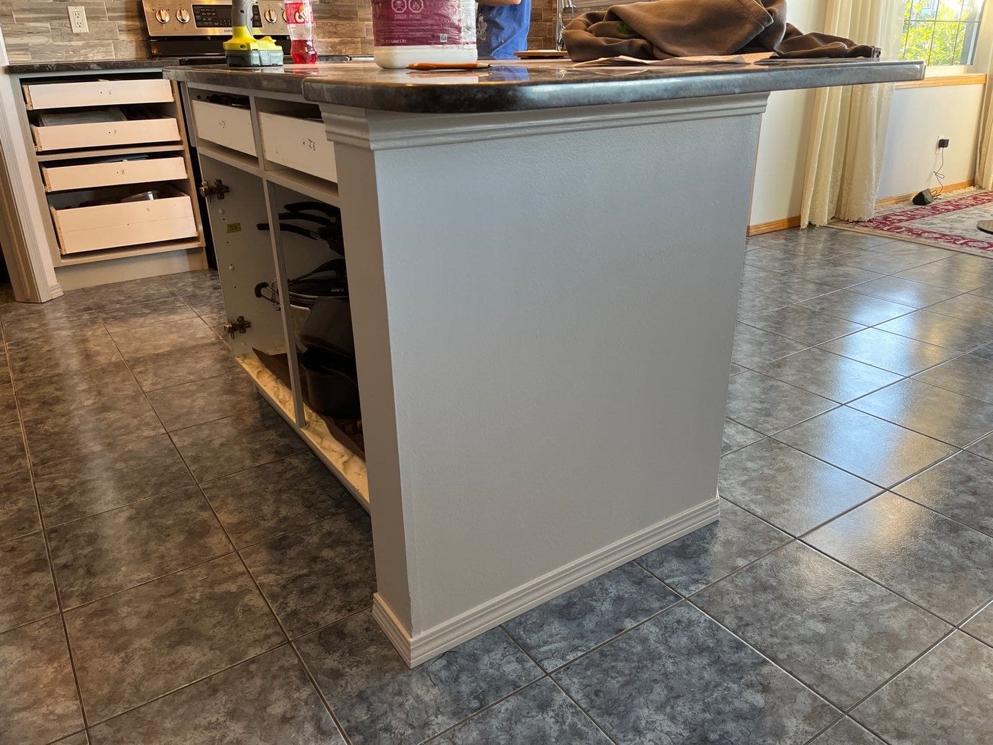 Dated Yellow Oak Kitchen Cabinets Painted to a Contemporary Shade of Grey