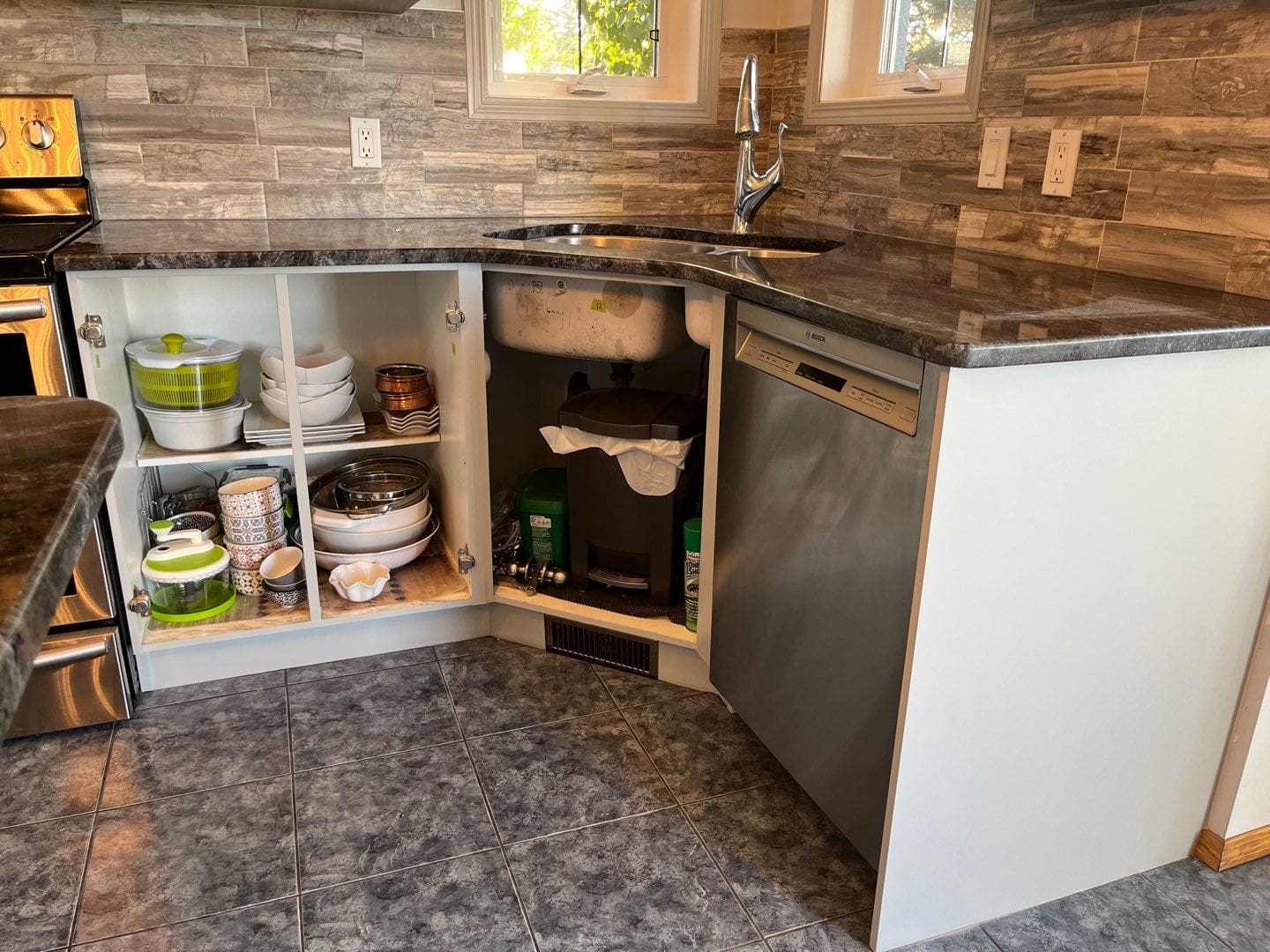 This project featured a full kitchen cabinetry painting in sprayed lacquer. This dated yellow oak kitchen was repainted in a modern and trendy Coventry Grey. We also upgraded the hardware to feature stylish dark brushed copper handles and drawer knobs. The new look and feel of these kitchen cabinets completely redefined the interior vibe of this beautiful, cozy home in the established neighbourhood of Simons Valley.