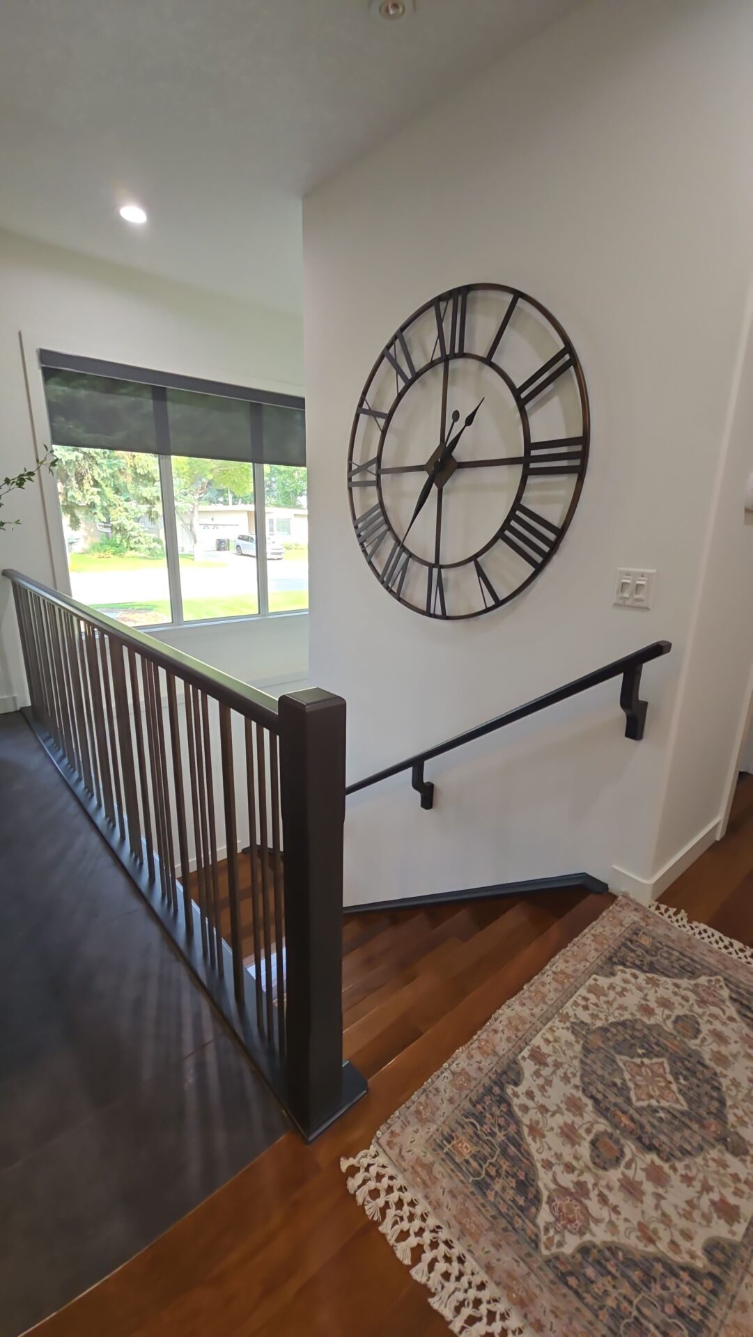 The homeowner received exactly what they envisioned – a full home makeover that feels bright, modern, and thoughtfully designed. The warm cabinet colour paired with crisp walls and bold banister accents created a timeless look that flows seamlessly from room to room. Best of all, the durable spray finish ensures their cabinets and millwork will stay looking great for years to come.