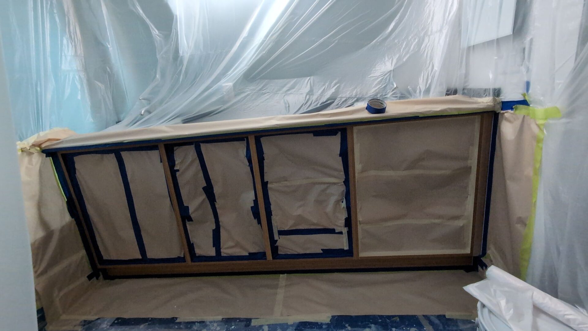 Full kitchen cabinet painting using professional spray coatings