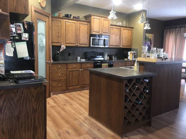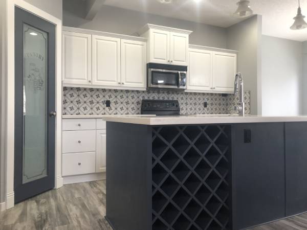 This Okotoks home received a dramatic makeover. From walls to cabinets in the bedrooms, bathrooms and kitchen cabinets, we painted nearly everything paintable. Combined with new counters, tile and flooring – the results were just stunning!