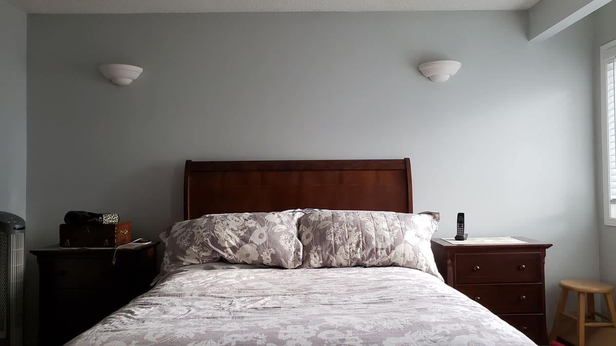 This Douglasdale home received a complete repaint on doors and trim, walls and cabinetry. The paint colours for this Calgary home were as follows: Wall Paint Colour: Benjamin Moore HC171 Wickam Gray with Benjamin Moore HC170 Stonington Gray on accent walls.