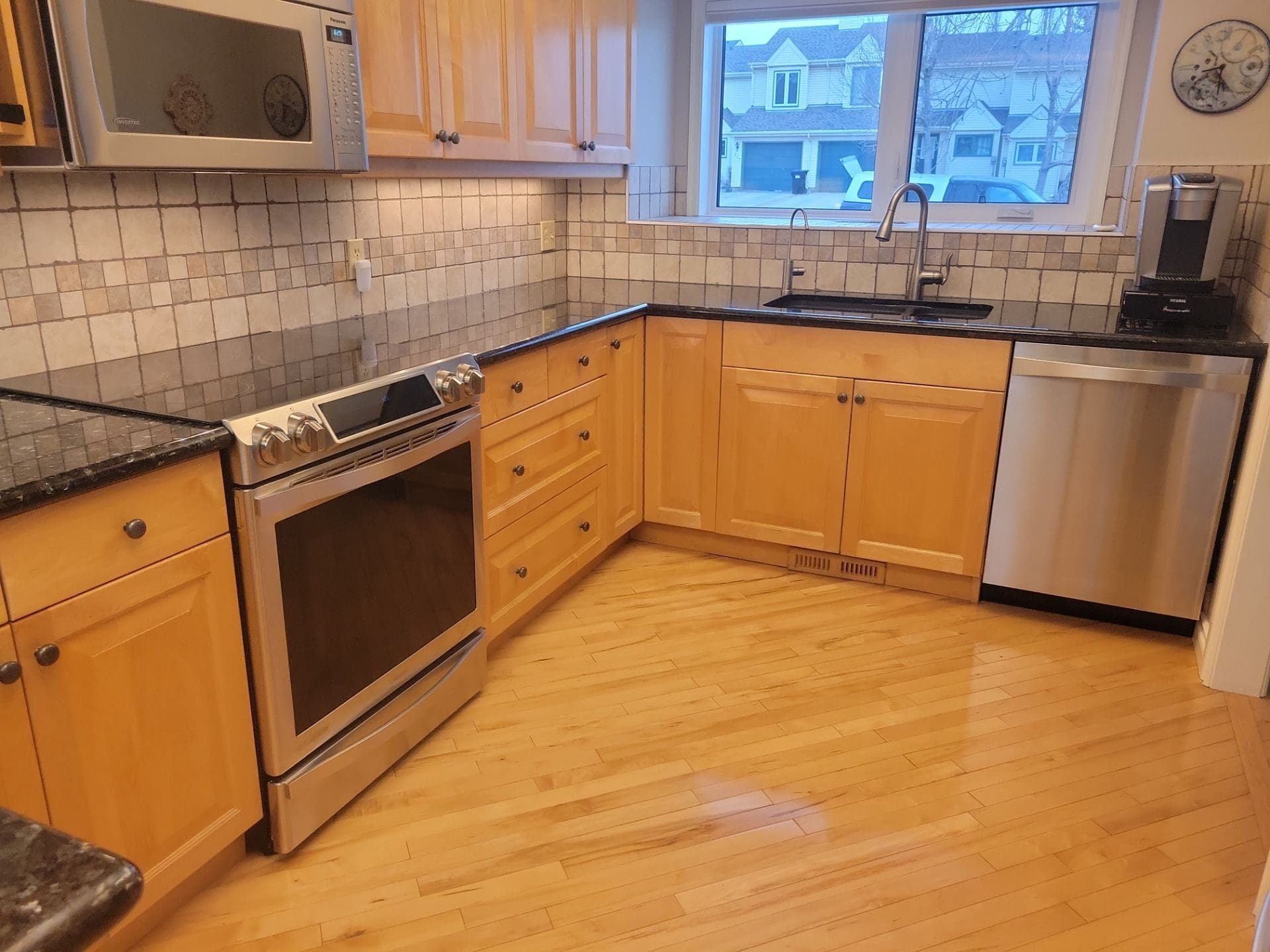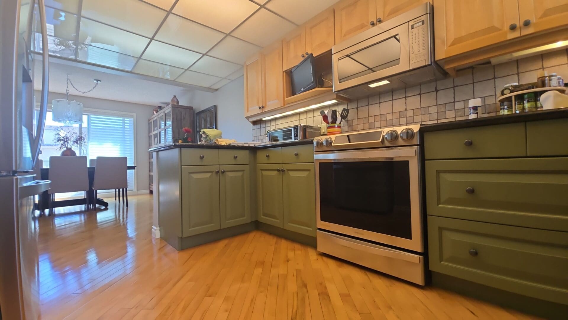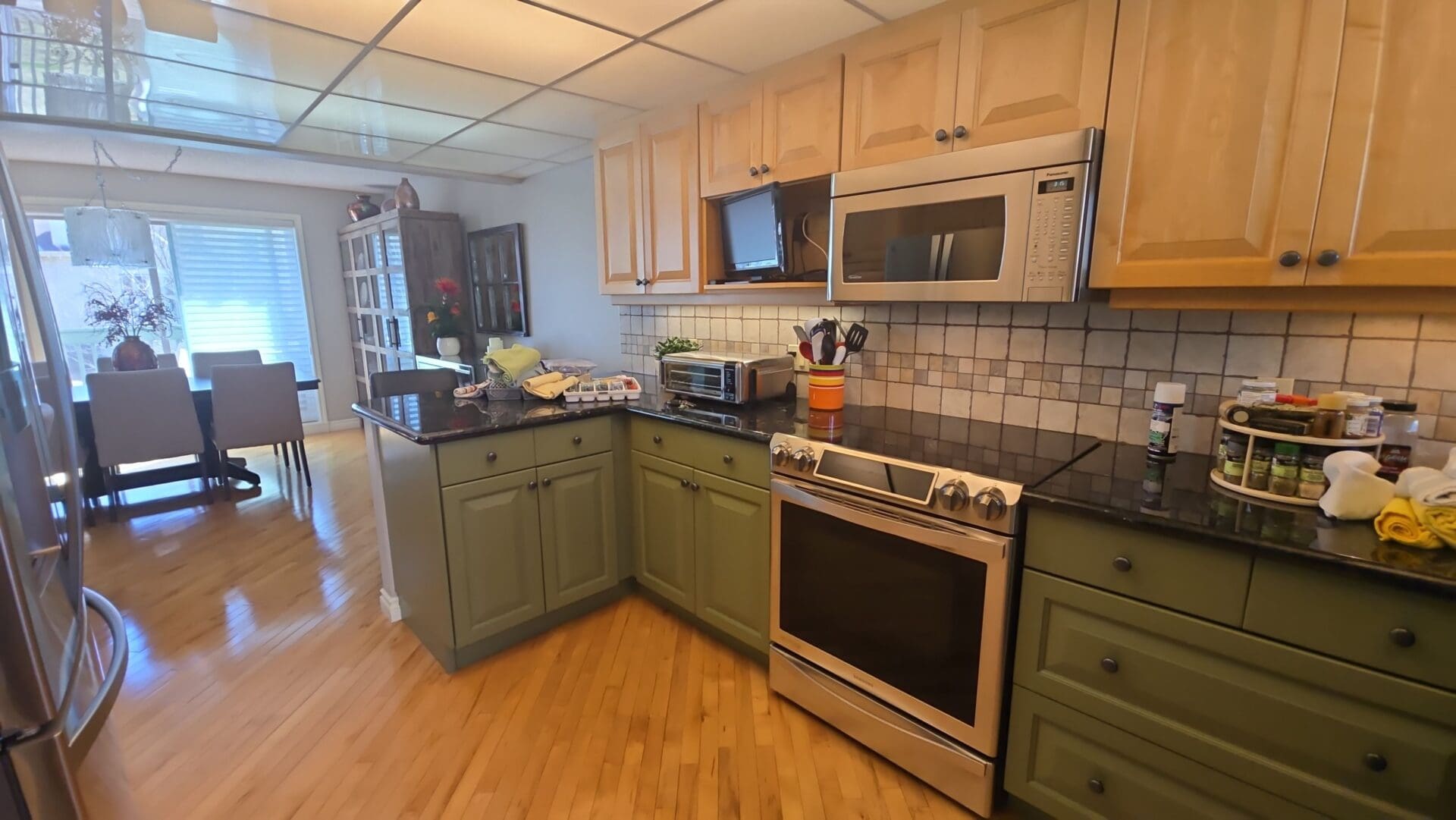 Maple Kitchen Updated with Stylish Green Lowers