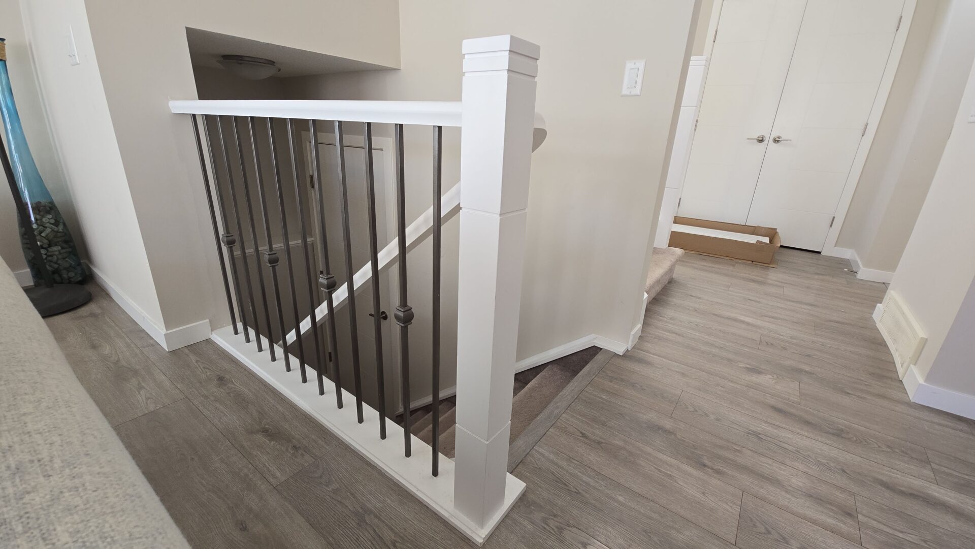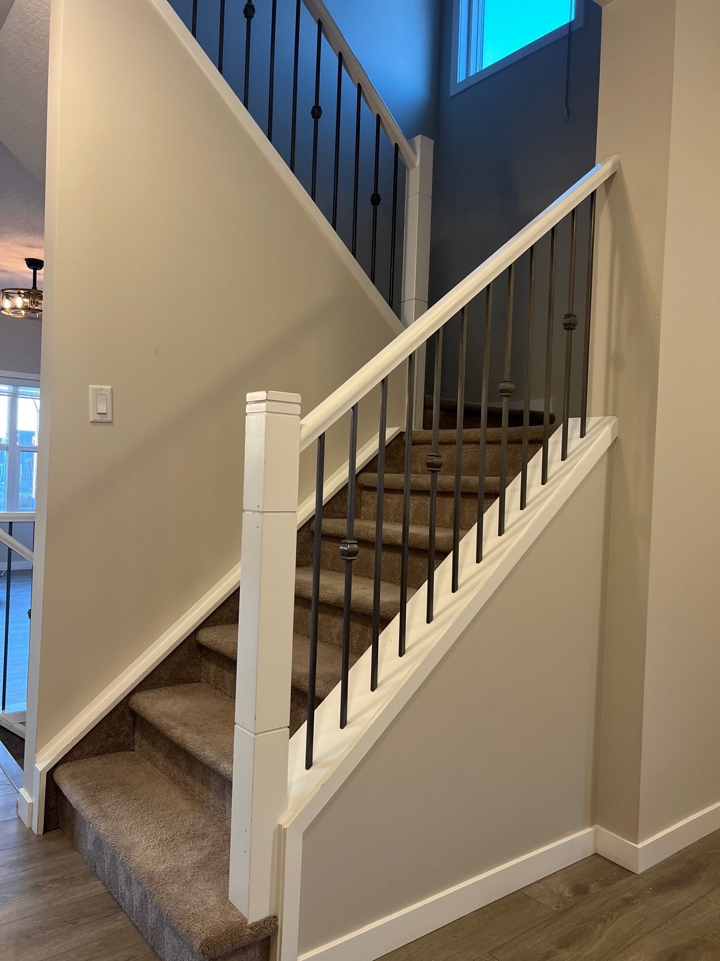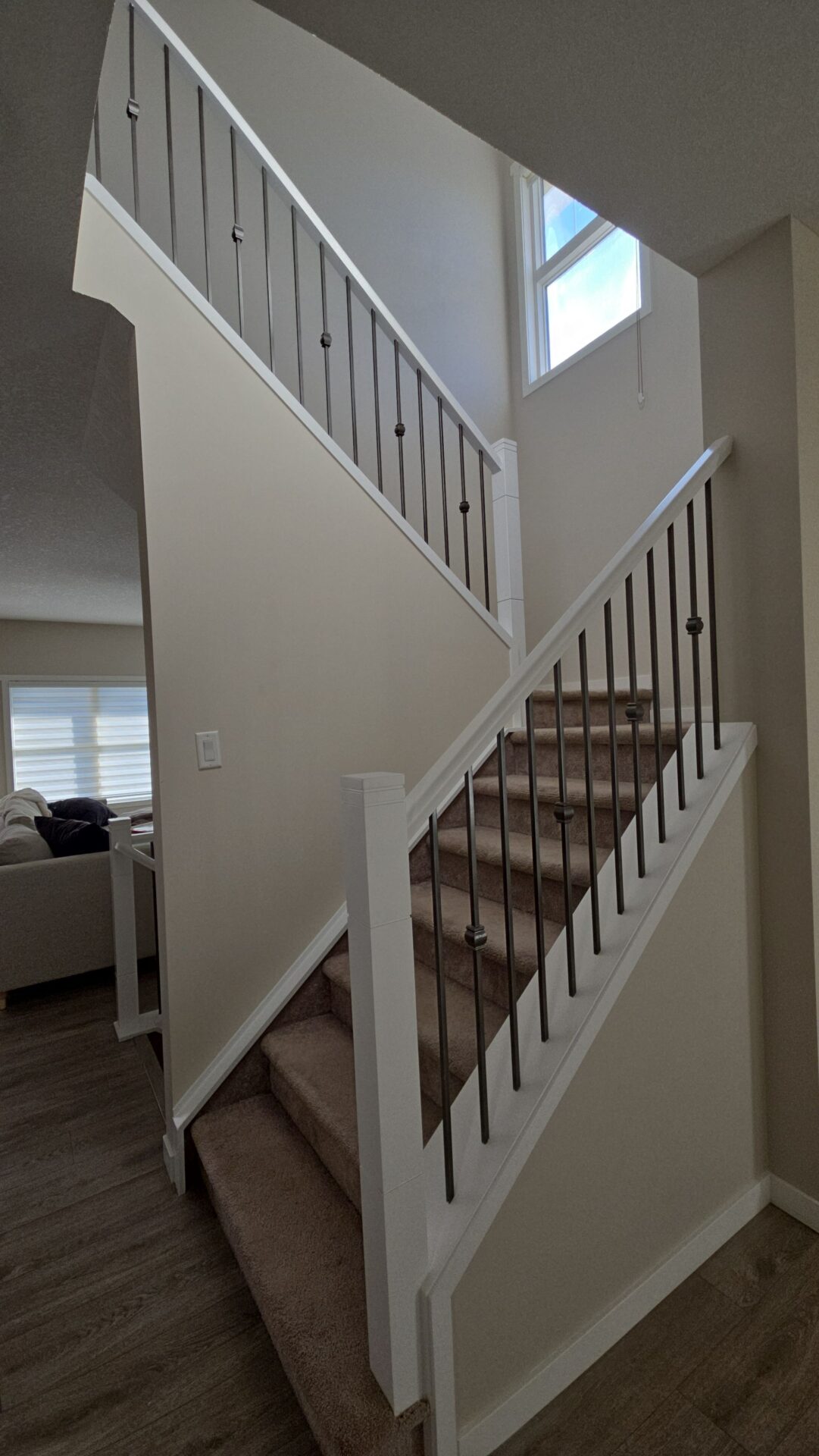 Banister Rail: Pure white to match surrounding trim