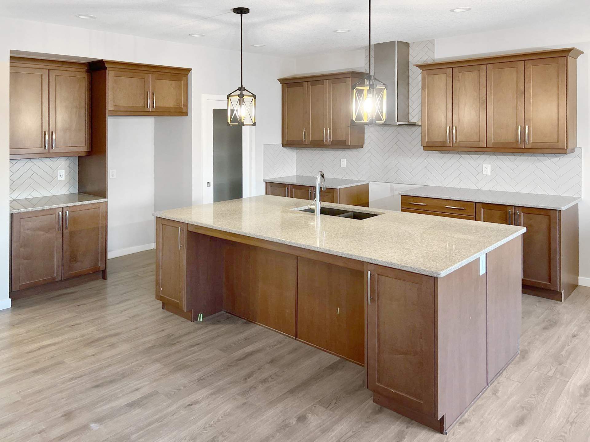 The existing cabinetry throughout the home featured dark brown stain that no longer matched the homeowner’s vision. Our team professionally prepared and spray-painted all selected surfaces to ensure a durable, factory-like finish.