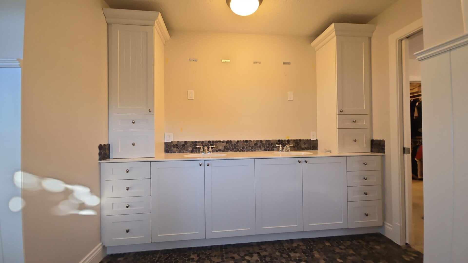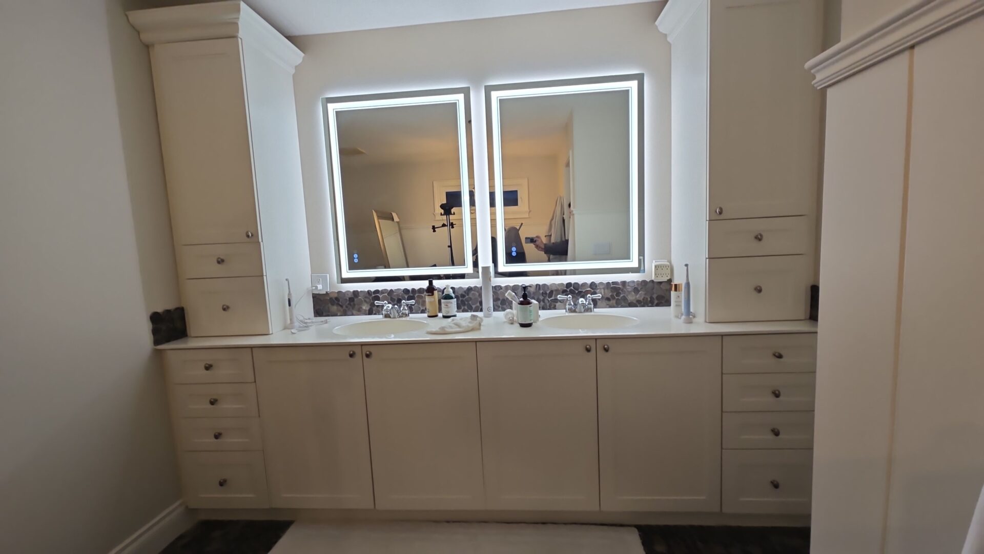 To achieve a seamless flow throughout the home, our team precisely colour-matched the existing trim and refinished all doors and trim for a crisp, updated appearance. The kitchen and bathroom cabinets were brightened to enhance light and openness, giving these spaces a refreshed, modern feel without the need for a full renovation.