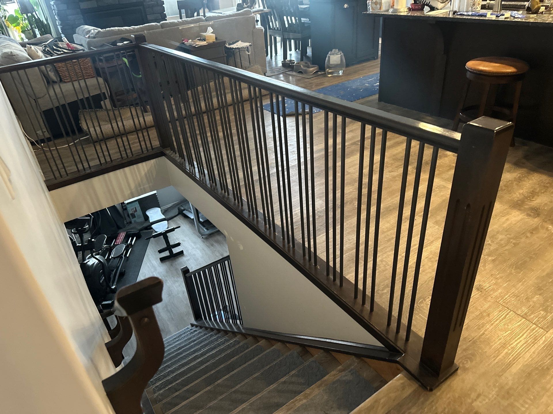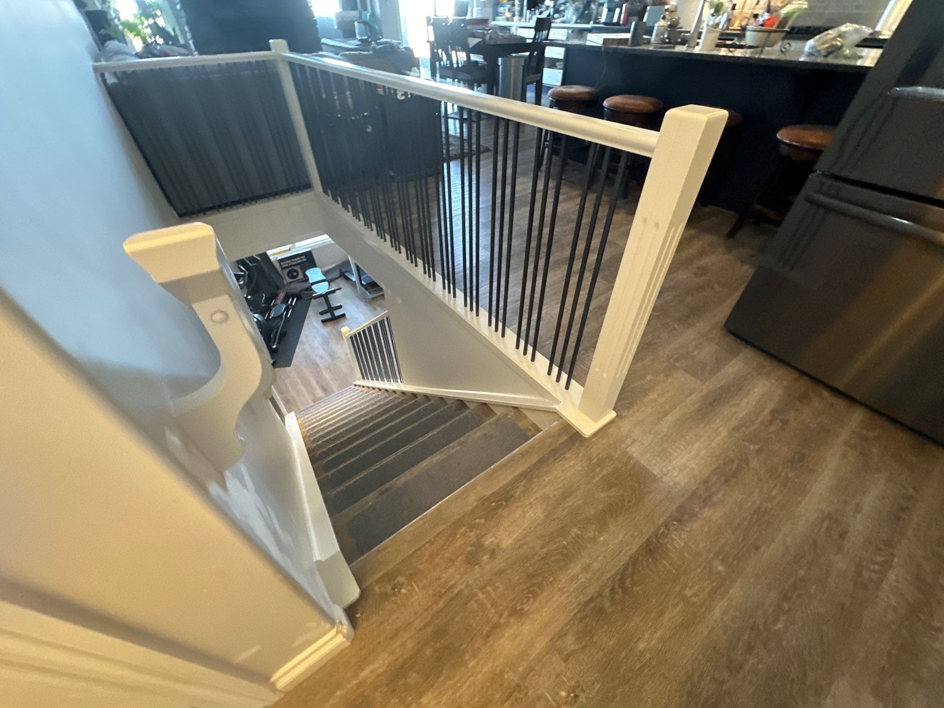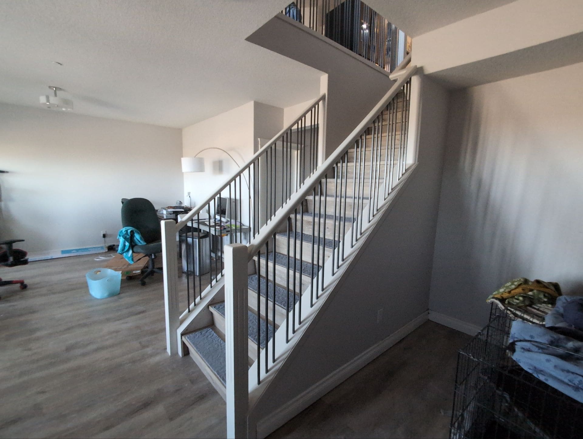 Do you have dated dark brown cabinets and handrails? Consider having them painted in a stylish and modern two-tone! The feel of this home’s interior was instantly modernized with a fresh two tone colour combo that truly opened up the space and added a contemporary flow from room to room. Replacing your cabinetry can be very expensive, and in most cases the doors and boxes you already have are still in great shape! Save money and transform your entire home with a cabinet and banister painting job today!