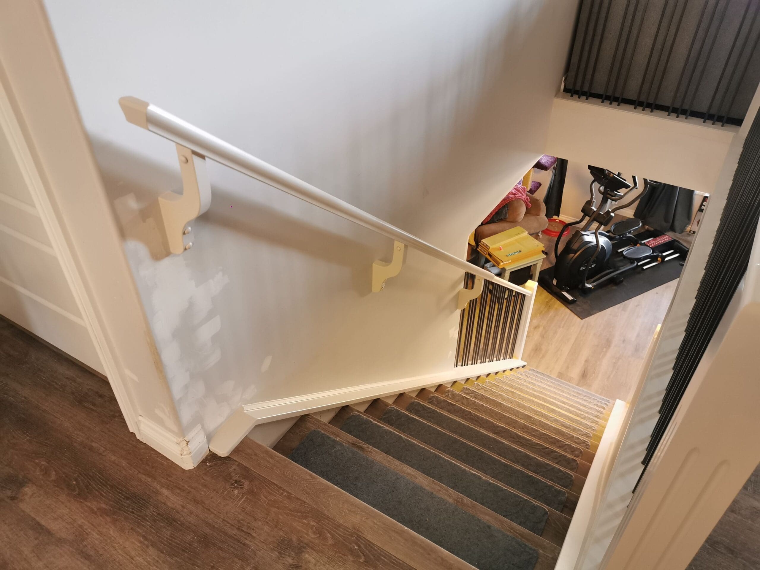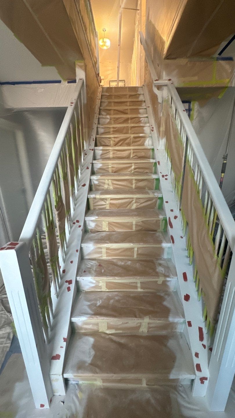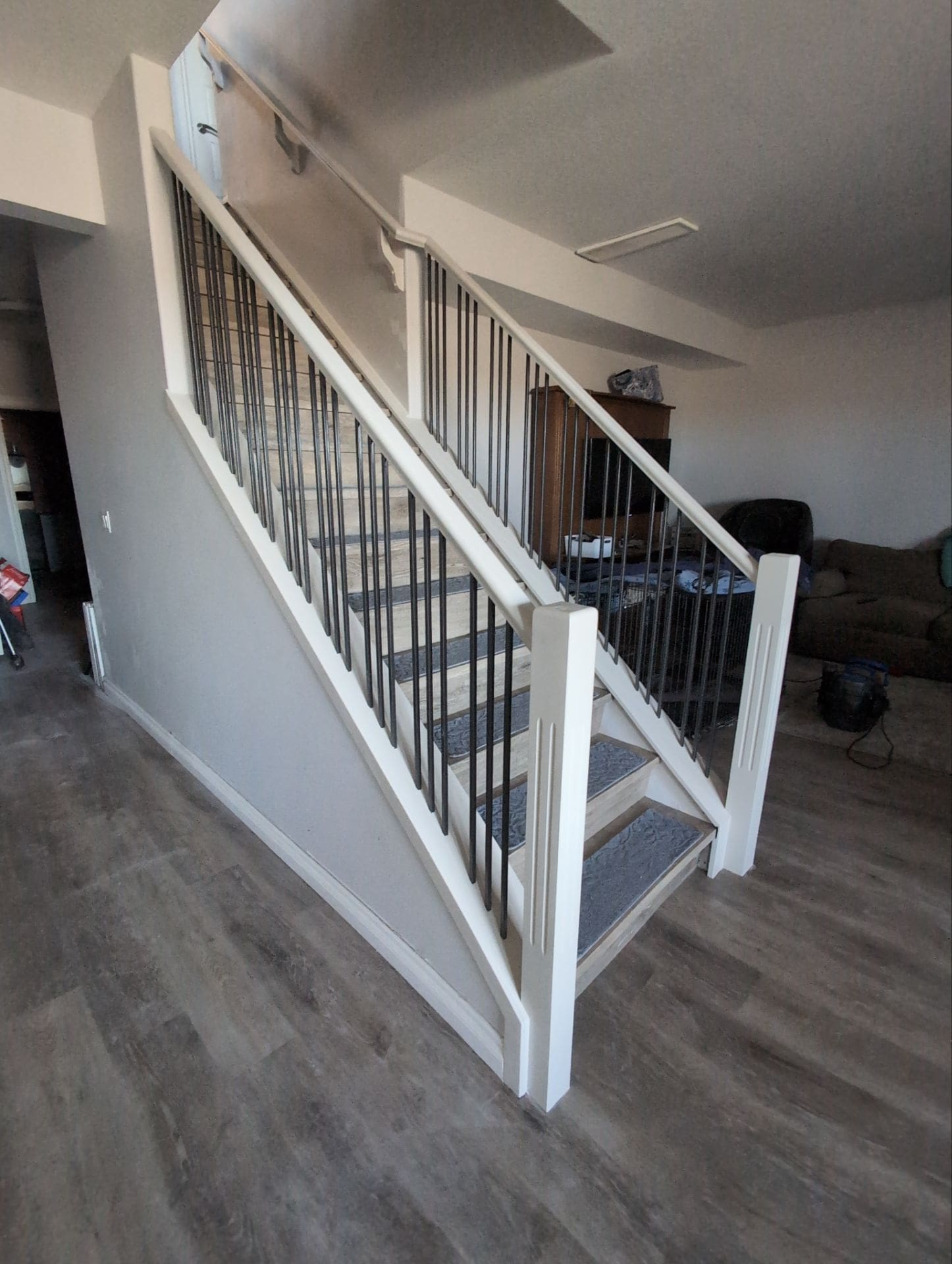 Do you have dated dark brown cabinets and handrails? Consider having them painted in a stylish and modern two-tone! The feel of this home’s interior was instantly modernized with a fresh two tone colour combo that truly opened up the space and added a contemporary flow from room to room. Replacing your cabinetry can be very expensive, and in most cases the doors and boxes you already have are still in great shape! Save money and transform your entire home with a cabinet and banister painting job today!