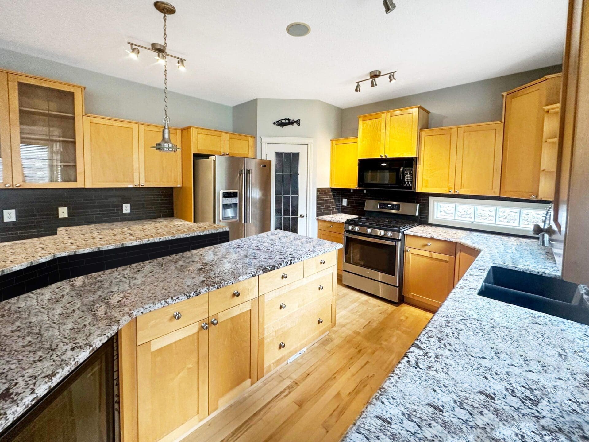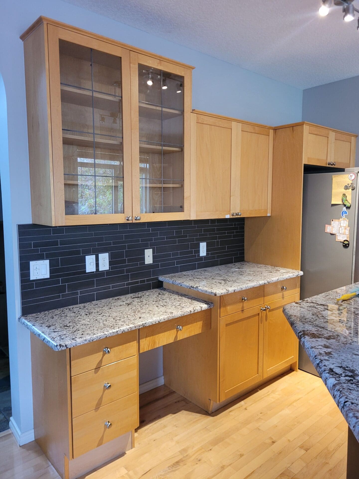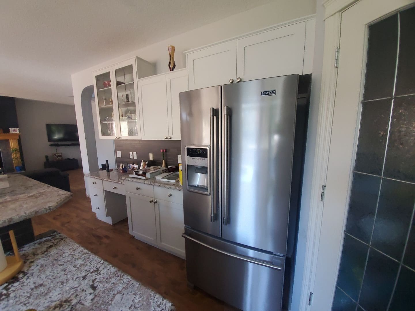 This project featured a full kitchen cabinet painting in professional spray coatings.