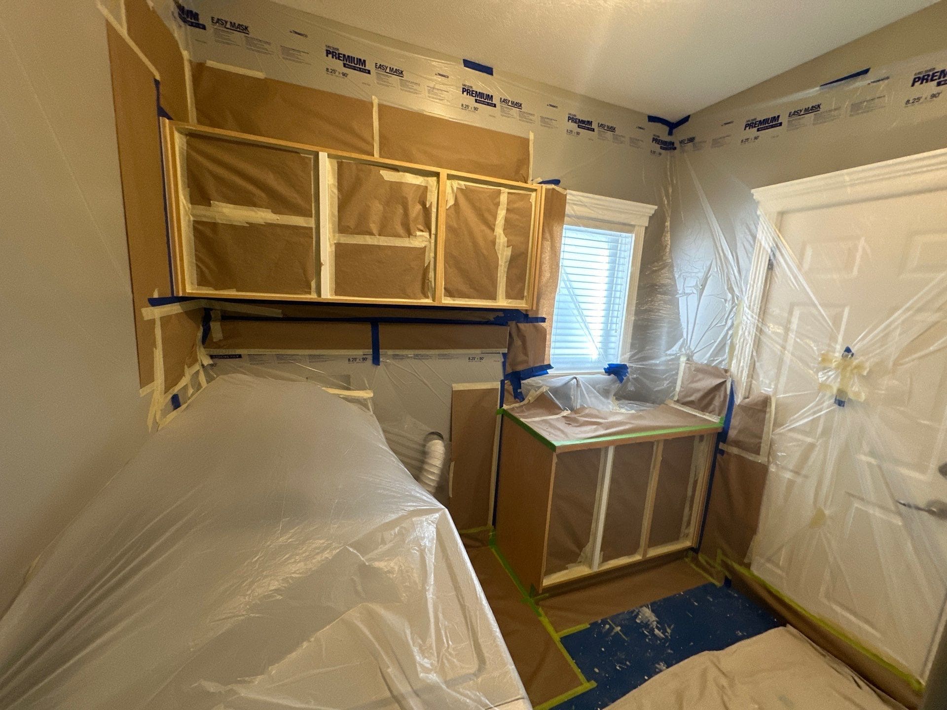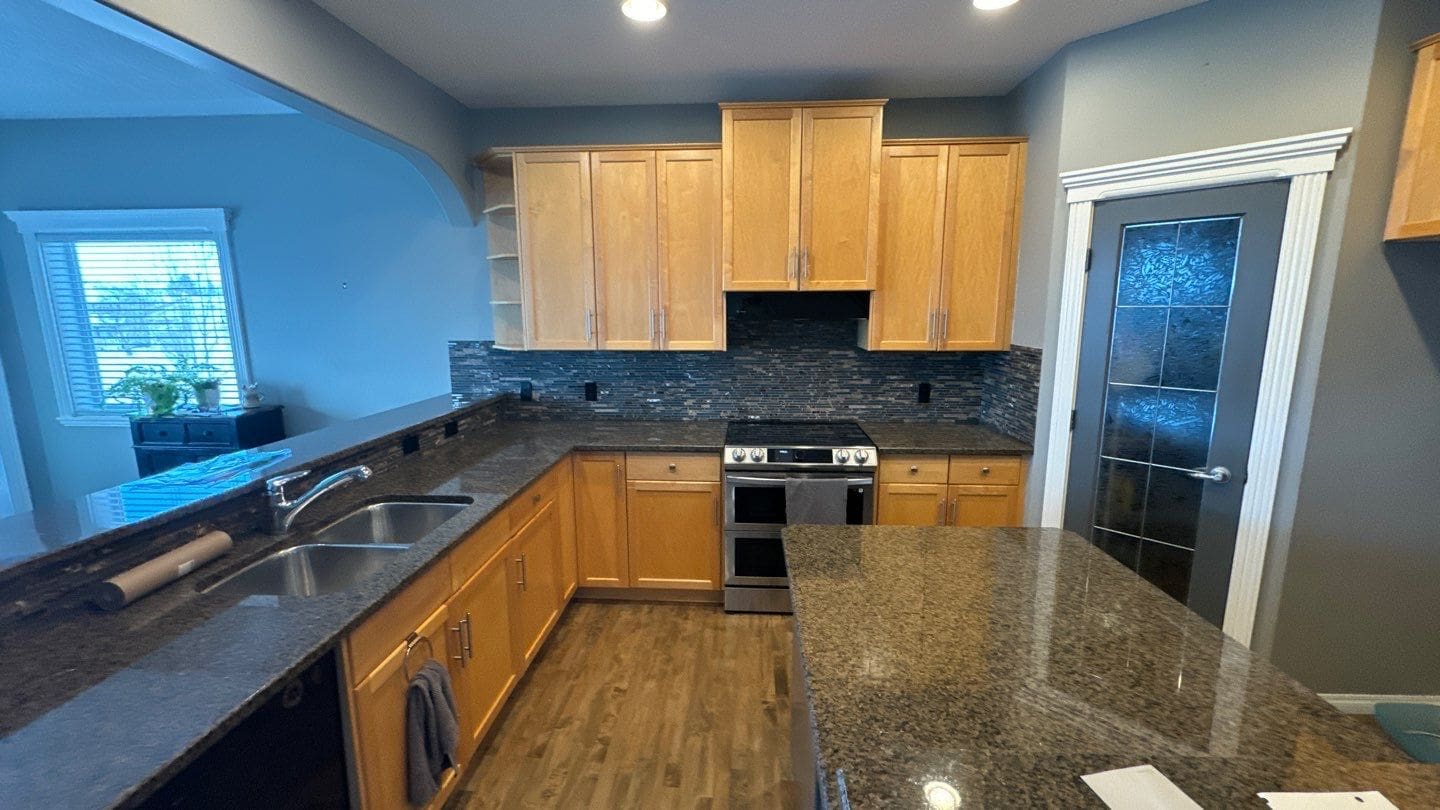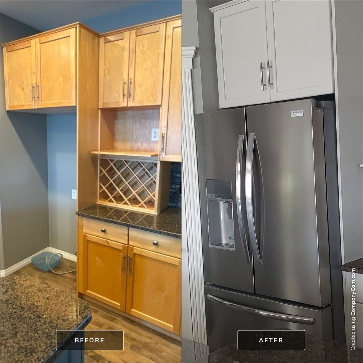 Dated Yellow Maple Two-tone to Modern Gray and White Cabinet and Trim Repaint