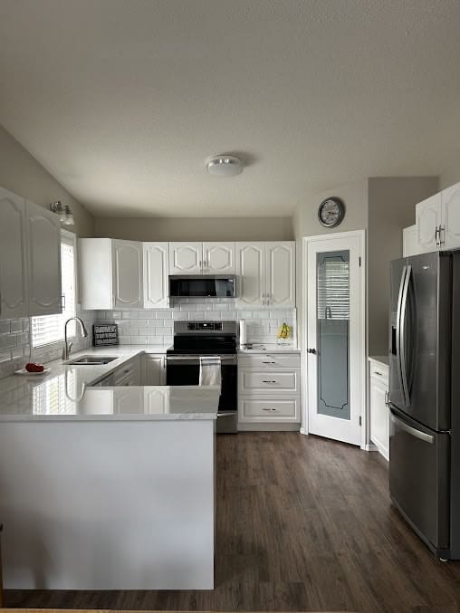 The entire team at Distinctively Paint were amazing to work with. My cabinets look beautiful and I am so pleased with the quality of work done. Painted cupboards, island, walls and trim. Their attention to detail was important to me and they did not disappoint. Highly recommend. See the before and after pictures.